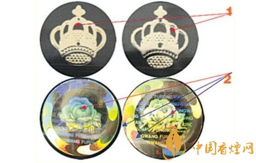 ⑤防偽標(biāo)識(shí),采用全息激光防偽技術(shù)。尤其是“FURONG WANG”、“芙蓉王”更為明顯。