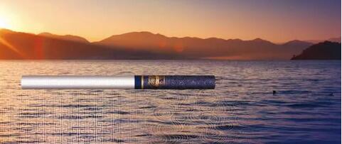 取出一支煙來仔細(xì)觀賞,卻不似包裝那般低調(diào)。湛藍(lán)色的煙嘴搭配鎏金波水浪紋,看起來華貴又不失穩(wěn)健,原來在低調(diào)的包裝之下還有這般威嚴(yán)所在。這種創(chuàng)意靈感來自云南的著名景觀撫仙湖。每到夕陽西下,金黃色的陽光灑滿湛藍(lán)色的湖面,波光粼粼之下魚龍?zhí)S,無限風(fēng)光盡在此湖。