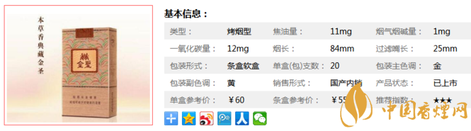 為進一步強化“金圣”的品牌特征,江西中煙將他們自主研發(fā)的第三代“金圣香”(中草藥添加劑)運用于“金圣”(典藏·本草香)的配方中,煙氣更加飽滿協(xié)調、更具層次感。下面我們一起來看看它的參數(shù)信息:焦油量11mg,煙堿量1mg,一氧化碳量12mg.