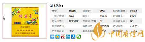釣魚臺中支香煙價格 釣魚臺中支口感及參數(shù)