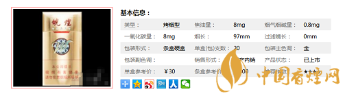 類型 :烤煙型 焦油量 :10mg 煙氣煙堿量 :1mg 一氧化碳量 :12mg