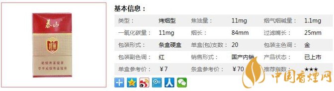 三、泰山紅將軍香煙參數(shù)