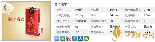 一、泰山觀云香煙價(jià)格