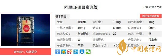 一、阿里山硬景泰典藍(lán)香煙價格