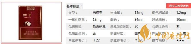 三、嬌子軟紫國寶香煙參數(shù)