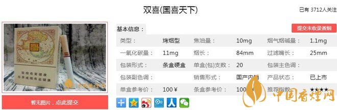 一、雙喜國喜天下香煙價格