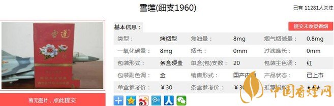 三、雪蓮細(xì)支1960香煙參數(shù)