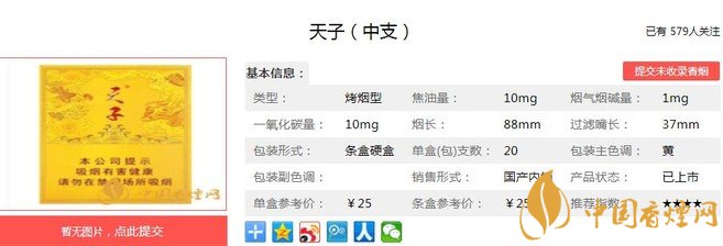 天子中支多少錢一包 口感醇厚實為天子品牌最新力作