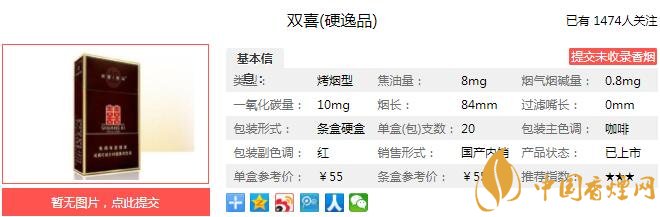 三、雙喜硬逸品香煙參數(shù)