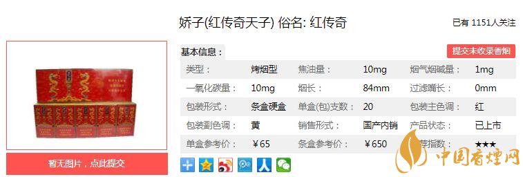 嬌子紅傳奇天子多少錢一包 紅傳奇口感及參數(shù)介紹