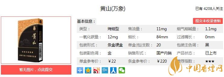 一、黃山萬象香煙價格