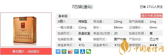 隨著高端人士對于卷煙吸食的安全、健康因素愈加關注,“七匹狼”秉承消費者利益至上,開創(chuàng)高端卷煙“全生態(tài)”體驗,確立了“煙香自然突出,煙氣醇和細膩,煙味細柔綿長”的高端品類風格特征,創(chuàng)建“生態(tài)綿柔香”高端卷煙全新品類。 經(jīng)香煙網(wǎng)小編市場調(diào)查七匹狼通仙售價為51元/包。