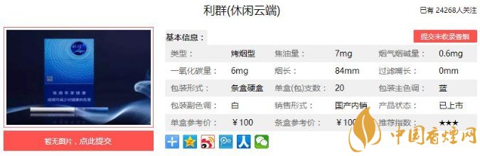 以上便是香煙網(wǎng)小編為大家介紹的關于利群休閑系第一款細支高價煙,僅僅是官方報價就達到了100元一包!的相關信息,大家看完之后是不是對于這款香煙更加了解呢,想要了解更多內(nèi)容歡迎點擊:利群陽光香煙一共有幾款 7款利群陽光香煙介紹