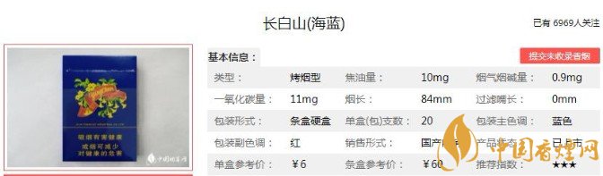 上世紀(jì)70年代的親民煙品長白山海藍(lán)價格及口感分析!