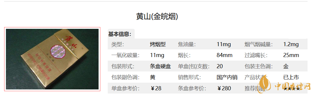 黃山金皖煙價格
