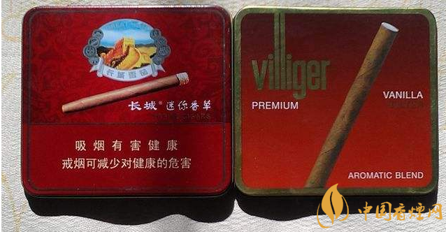 長城迷你國際香草雪茄,口味自然甜熟,含淡雅的香草味,香氣自然而流暢。鐵盒包裝,小盒零售價為25元/盒。