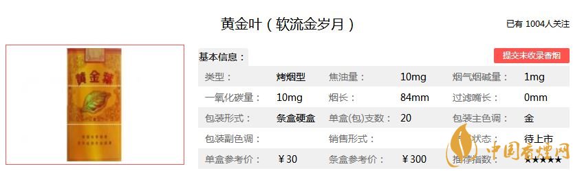 黃金葉軟流金歲月多少錢一包