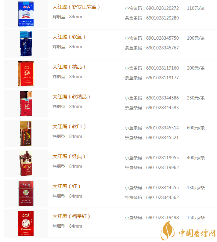 以上就是由香煙網(wǎng)小編為大家整理盤點(diǎn)的大紅鷹香煙價(jià)格表圖片的相內(nèi)容,希望為大家提供幫助。相信通過上述內(nèi)容的介紹,大家對大紅鷹香煙的價(jià)格有了了解。想查詢更多香煙價(jià)格,請關(guān)注我們!