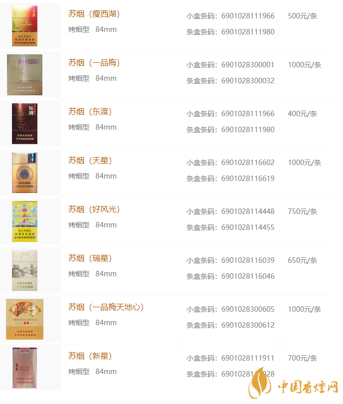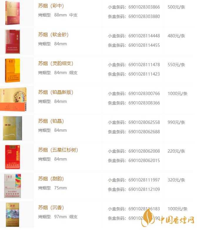 蘇煙價(jià)格和圖片