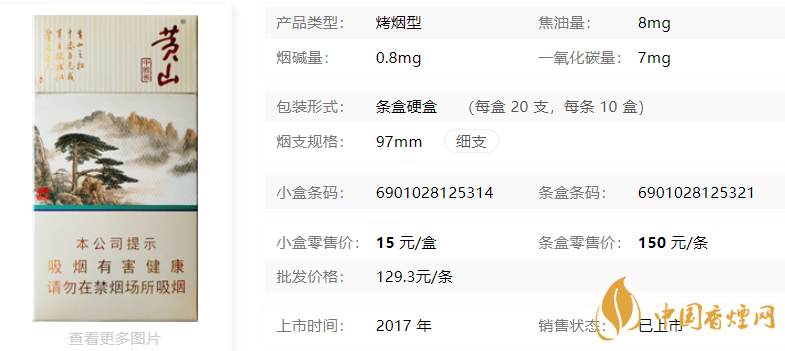 黃山細支香煙核心參數(shù):