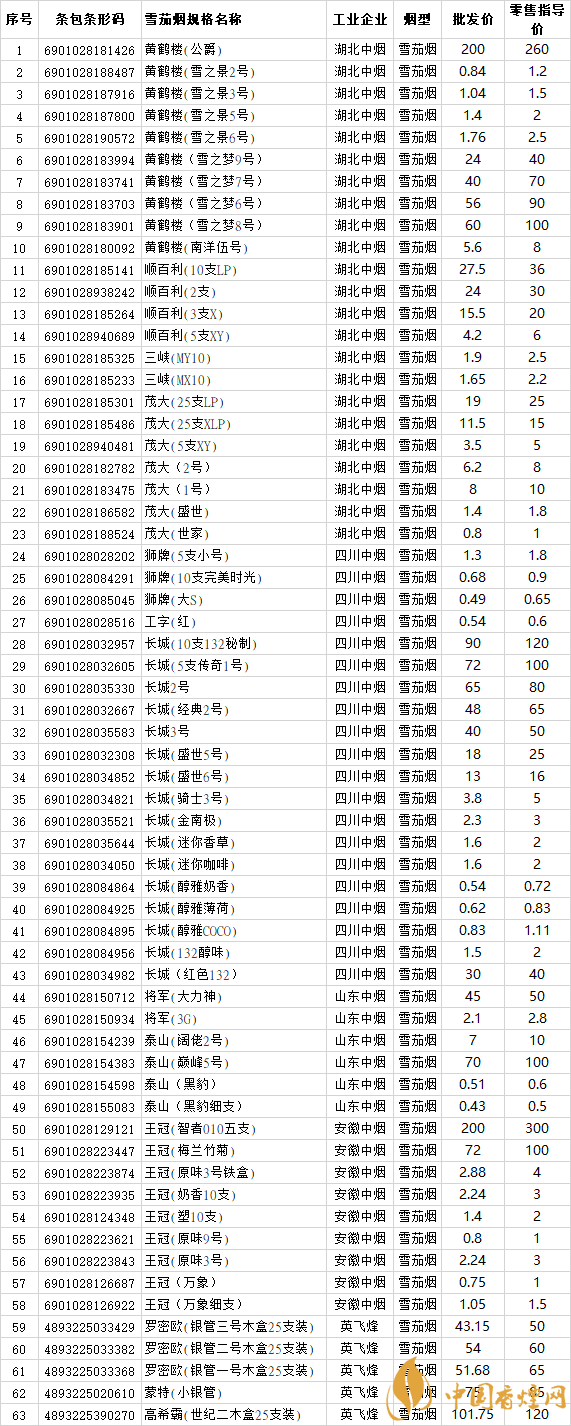 最新國產(chǎn)雪茄煙價格表圖 2025年湖北省雪茄煙價格(上半年)
