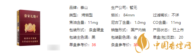 泰山(皇家禮炮21響)作為山東中煙十分著名的一款香煙,其秉承中西禮儀文化,運(yùn)用創(chuàng)新科技精心打造。不僅有著豐富的文化內(nèi)涵,而且產(chǎn)品極具特點(diǎn),在濾嘴中添加了“皇家禮炮21年”頂級(jí)威士忌的爆珠。2021泰山皇家禮炮21響多少錢(qián)一盒?下面香煙網(wǎng)小編將對(duì)泰山皇家禮炮21響價(jià)格表圖片進(jìn)行介紹。