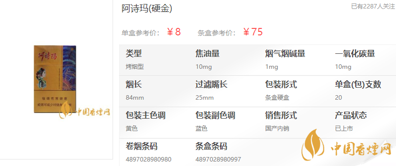 阿詩瑪硬金香煙參數(shù)