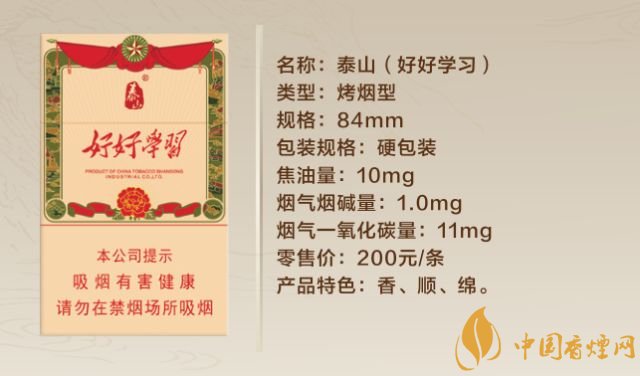 泰山的好好學(xué)習(xí)和白沙的天天向上。激勵著新一代的年輕人 :白沙出了種煙叫天天向上,泰山出了種煙叫好好學(xué)習(xí),泰山牌好好學(xué)習(xí)的香煙,我們是祖國的兒女,我們一定好好學(xué)習(xí),報效祖國……泰山煙新品多少錢?泰山好好學(xué)習(xí)20元包。