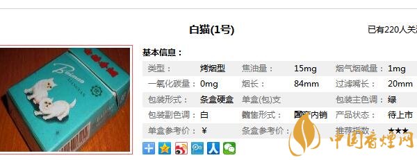 白貓香煙參數(shù)信息