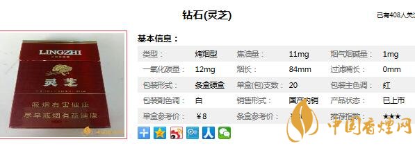 鉆石靈芝香煙多少錢(qián)一包 鉆石靈芝煙價(jià)格8元/包