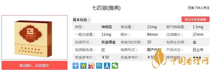 三、七匹狼雅典香煙參數(shù)