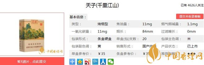 一、天子(千里江山)香煙價(jià)格