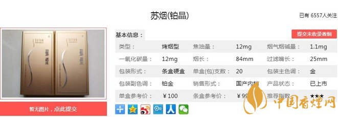 一、蘇煙鉑晶香煙價(jià)格