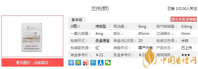 以上便是由香煙網(wǎng)小編為大家介紹的關(guān)于蘭州橋細(xì)支煙價(jià)格 蘭州橋口感及參數(shù)分析的相關(guān)信息,想要了解更多有關(guān)內(nèi)容請(qǐng)點(diǎn)擊:金圣滕王閣·回味無(wú)窮多少錢一包 回味無(wú)窮口感及參數(shù)介紹