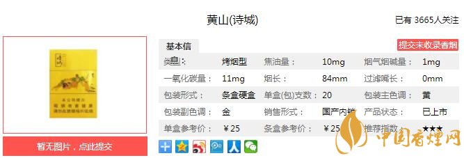 黃山詩城煙支長84mm,過濾嘴長25mm,濾嘴構(gòu)造簡單,沒發(fā)現(xiàn)有激光打孔等形式的降焦手段。卷紙為豎條紋造型,煙葉填充較為飽滿。。下面我們一起來看黃山詩城的參數(shù)信息:焦油量:10mg 煙堿量:1.0mg 一氧化碳量:11mg