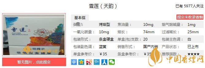 一、雪蓮天韻香煙價格