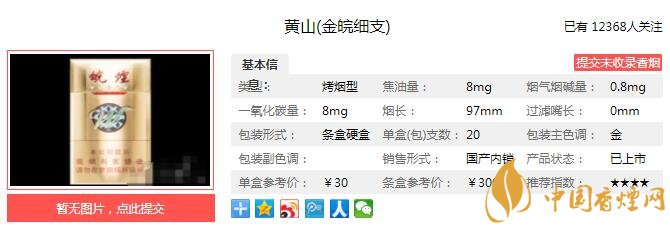 一、黃山金皖細(xì)支香煙價(jià)格