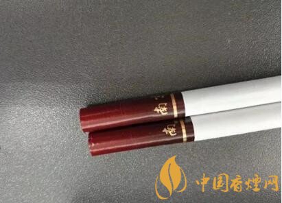 從盒子里面抽出兩支煙來(lái),放置于桌上,觀之,煙嘴的顏色和煙盒的顏色也是一樣,采用了漸變色,紅褐色的煙嘴中間有兩排不怎么明顯的降焦孔。煙嘴的長(zhǎng)度為32毫米,而整個(gè)煙支的長(zhǎng)度還是普通的84毫米。煙嘴下部有南京二字和印有古都兩個(gè)字的印章圖案。一道閃閃發(fā)光的金箍環(huán)繞著整個(gè)煙嘴。