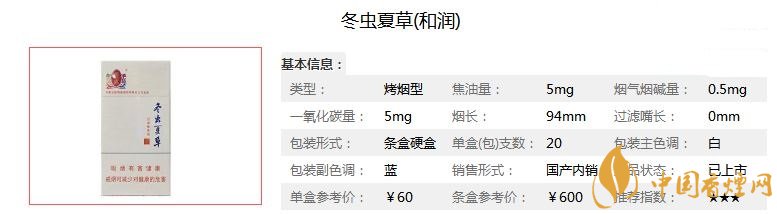 以上就是香煙網(wǎng)小編為大家整理介紹的關(guān)于冬蟲夏草和潤價格參數(shù)以及煙民評價的內(nèi)容,看完之后你對這款冬蟲夏煙是不是更了解了,你們還有不同的體驗(yàn)感受嗎?歡迎大家在評論區(qū)積極留言討論。