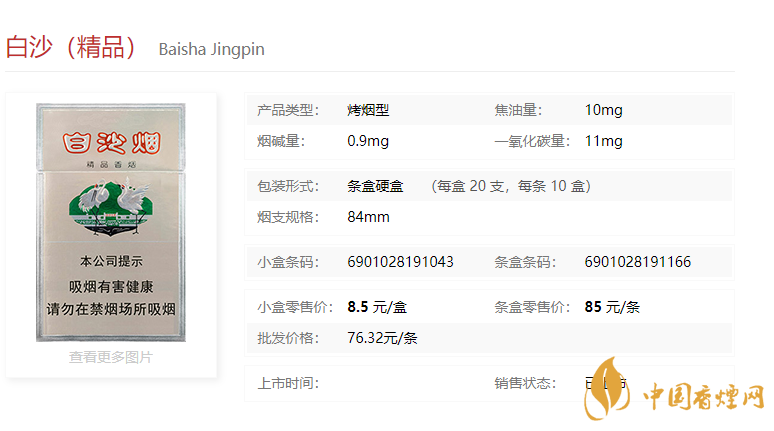 精品白沙,烤煙型,中高檔卷煙,中國醇和派的領飛者。1995年面市以來,產(chǎn)品深得消費者的喜愛,銷量增長迅猛,亦是全國中高檔煙市場的主要牌號之一。精品白沙,外包裝延用“白沙”牌卷煙外包裝圖案,采用高檔銀卡紙,經(jīng)壓凸套印來突出商標的主體圖案及品牌形象,格調(diào)高雅、新穎,裝璜精美,成為企業(yè)效益增長的主要來源。吸味醇和、香氣濃郁、清雅豐滿、余味純凈、舒適。