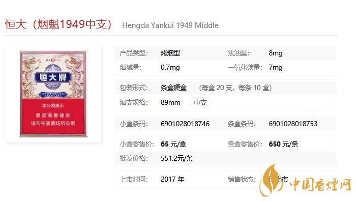 煙魁1949中支香煙簡(jiǎn)介