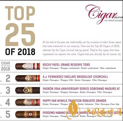 雪茄愛好者看過來,2018年雪茄排行榜來了!2018年排名前十的雪茄有哪些呢?《cigarjournal》組織了品鑒小組評選出2018年前25名雪茄,品鑒小組由來自世界各地的70名雪茄愛好者和專家組成,涵蓋各個年齡層的女性和男性。下面就由香煙網(wǎng)小編帶大家一起來了解一下2018年雪茄排行榜的相關信息。