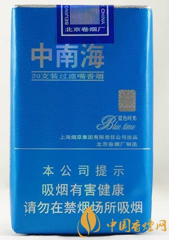 這款煙所含的焦油量為7mg,中南海除了“濃味”和“軟精品”之外,其他產(chǎn)品都是軟盒包裝的。估計(jì)是因?yàn)闈馕妒蹆r不高、軟精品產(chǎn)量有限,北京卷煙廠軟包生產(chǎn)線的潛力沒有被完全發(fā)揮出來,所以這包藍(lán)色時光的開發(fā)才被提上日程的吧? 通體純藍(lán)、帶波浪底紋的煙盒很是清爽。