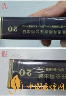 真品卷煙的拉帶設(shè)計(jì)在煙包中部,開(kāi)啟口在煙包側(cè)面,平頭圓角;假冒偽劣產(chǎn)品拉線(xiàn)頭依然在煙包上側(cè)。