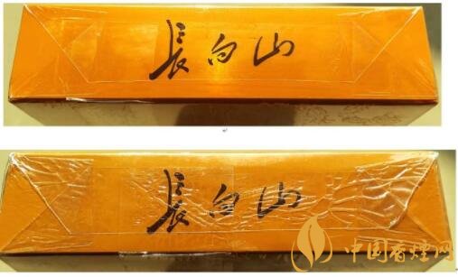(1)真品卷煙條盒正面“長(zhǎng)白山”字體筆畫“起凸”呈現(xiàn)中間凸邊緣凹,筆畫圓潤(rùn)飽滿,燙金明亮。