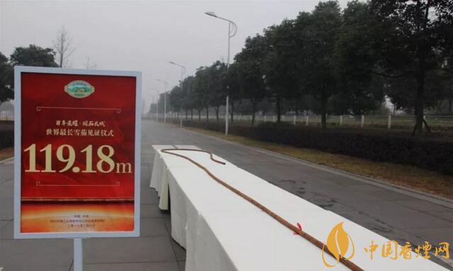 2018年2月8號(hào),這款雪茄在四川中煙工業(yè)有限責(zé)任公司長(zhǎng)城雪茄煙廠驚艷亮相,打破了此前由古巴人保持的81.8米世界吉尼斯紀(jì)錄,成為中國雪茄的第一個(gè)“世界之最”。據(jù)悉,該雪茄將在中國雪茄博物館永久陳列,并將由專人進(jìn)行定期養(yǎng)護(hù)。