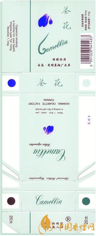1998年昆明卷煙廠出品。“茶花”牌卷煙創(chuàng)牌于1975年,茶花是云南特有的名花,也是昆明市的市花。1975年昆明卷煙廠用英國(guó)引進(jìn)的全國(guó)煙草行業(yè)第一臺(tái)過濾嘴卷煙設(shè)備,生產(chǎn)云南第1包過濾嘴香。1976年,首批銷往香港,開創(chuàng)中國(guó)過濾嘴卷煙出口創(chuàng)匯先河。