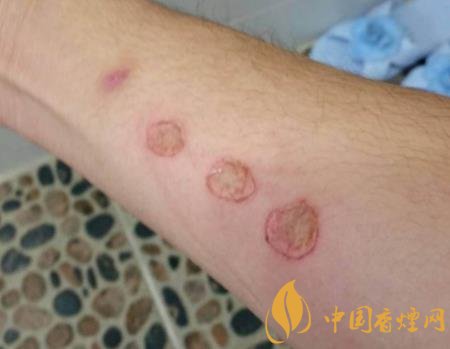 煙疤的形狀多是圓形,和香煙頭的形狀基本一致,可萎縮,可凹陷,可增生;形成疤痕疙瘩者,可向外圍生長。在顏色上,有膚色,有色素減退的,色素沉著的,或紅色的。