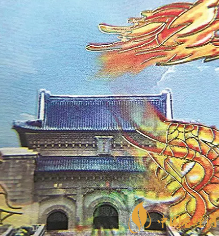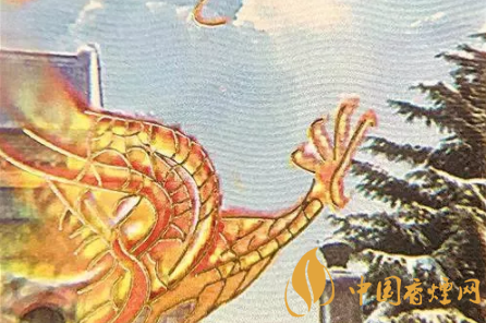 真煙小盒正面龍紋和松枝印刷清晰,色彩飽和度高,有立體感;假煙小盒正面龍紋和松枝印刷模糊,無立體感,且有粗糙圓形圖案。(上真下假)