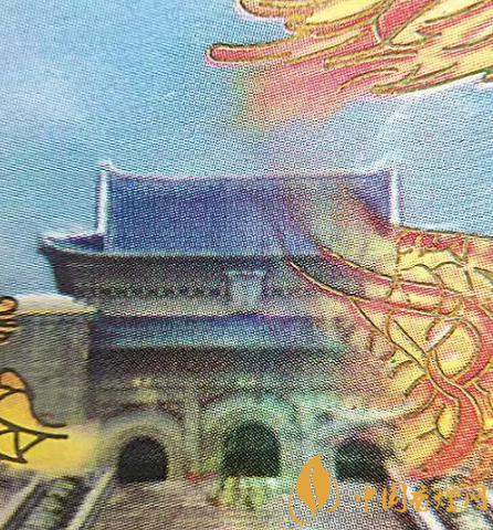 真煙小盒正面天空波浪紋、中山陵屋頂瓦片清晰連貫;假煙小盒正面天空波浪紋、中山陵屋頂瓦片模糊不清,時有時無。(上真下假)